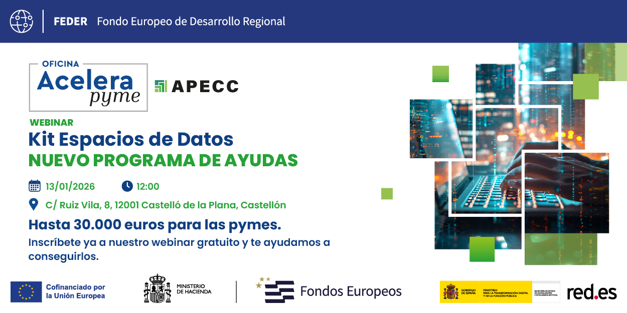 Te invitamos a participar en nuestro webinar, con posibilidad de asistencia presencial u online, en el que explicaremos qué es el Kit Espacios de Datos y cómo tu empresa puede acceder a ayudas de hasta 30.000 € a fondo perdido.